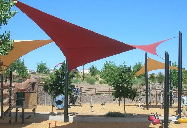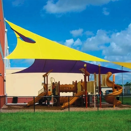 Doppelter Kunststoff® Spielplatz-Sonnenschutzsegel bestehen aus UV-geschütztem Sonnenschutzgewebe aus hochdichtem Polyethylen (100 % HDPE) mit stabiler Naht. Mit langlebigen D-Ringen aus Edelstahl in jeder Ecke können die Sonnensegel einfach an jedem stabilen Verbindungspunkt befestigt werden, um Sonnenschutz und persönliches Design dort zu bieten, wo Sie es brauchen. Doppelter Kunststoff® Spielplatz-Sonnenschutzsegel werden häufig für Terrassen, Rasen, Gärten, Pools, Grillplätze, Teiche, Decks, Kailyards, Innenhöfe, Hinterhöfe, Vorgärten, Parks, Carports, Pergola, Sandkästen, Auffahrten oder andere Anlässe im Freien verwendet.